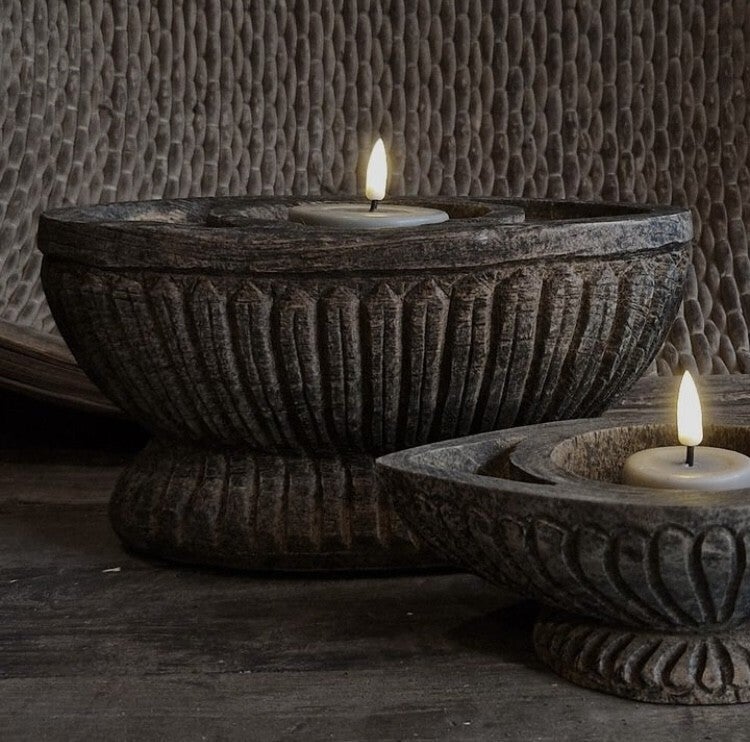 Prachtige houten kandelaar van het merk Luksa (Het gaat om de achterste kandelaar op de foto)25 x 14 x 12 cm (WxDxH)