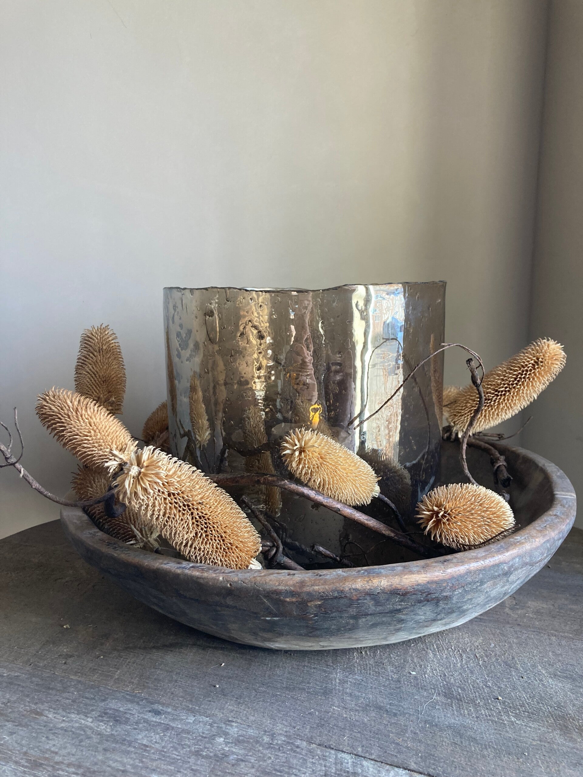 Leuk om mee te decoreren in een vaas, maar ook heel leuk als krans om een windlicht. In de hele tak zit ijzerdraad dus deze is goed te buigen